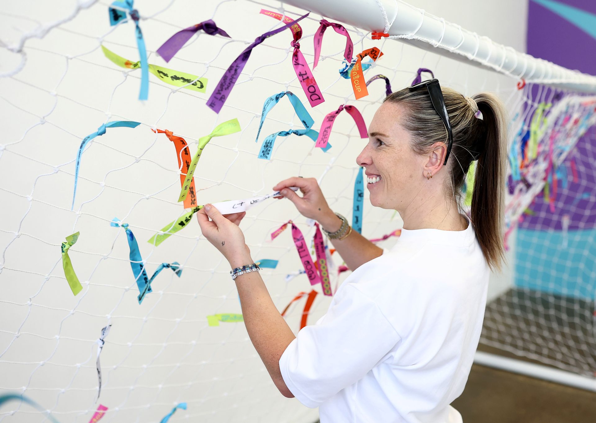 Fans also had the opportunity to take part in a collaborative women’s football art installation, writing messages of support to the players on branded hair ribbons that were tied on to a goal.
