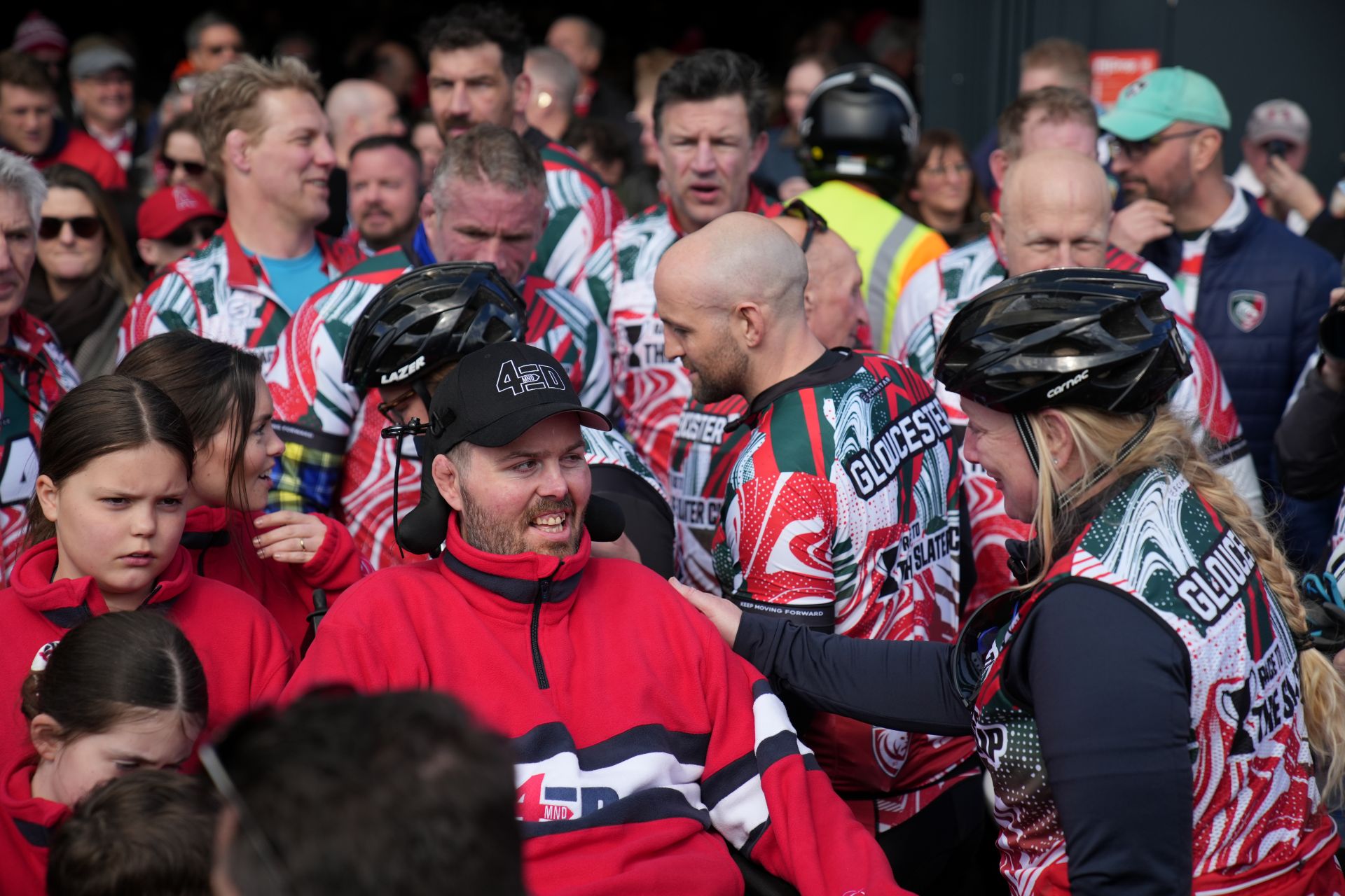 To drive awareness and fundraising donations, MatchFit ideated and delivered The Race to the Slater Cup - a high-profile cycle race featuring 20 former players from both sides, cycling simultaneously from Kingsholm and Welford Road to Villa Park on the day of the fixture. Mike Tindall and Martin Johnson CBE led their respective teams, creating a compelling, shareable story built around community, legacy, and purpose.